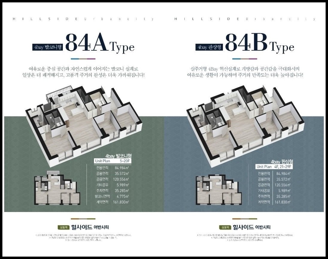 계절별 일조량 안정적 확보 남향 위주 채광 설계, 획일적인 평면설계에서 벗어나 가족단위 실거주자들의 라이프 스타일에 맞춰 다양한 니즈를 충족시킬 수 있는 전용면적 ▲84㎡ Type 더 넓고 더 높은 4Bay 3Room∘2Bathroom 아파트형 혁신 평면구조로 구성하였습니다.
